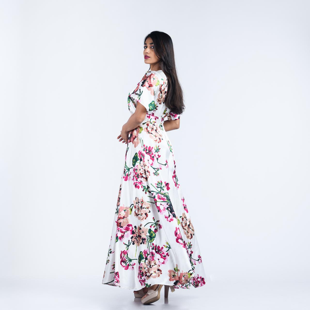 Boat Neck Butterfly Sleeve Satin Evening Gown