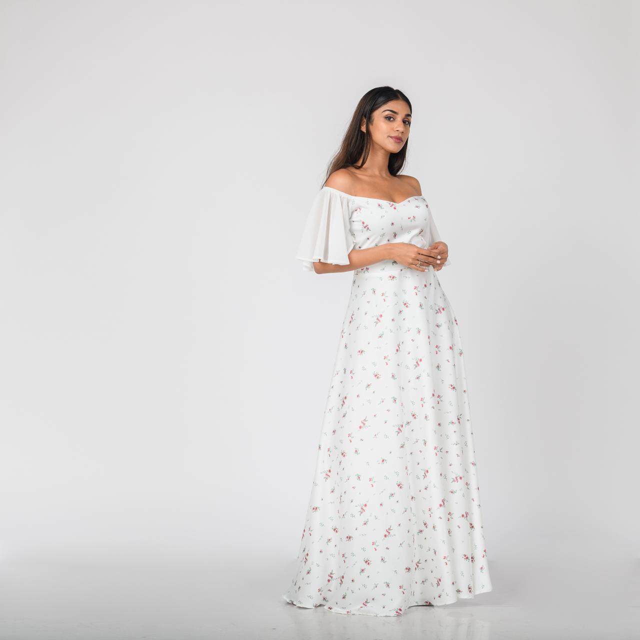 - Details: Sweetheart Neck, Frill Sleeves, Flared, Lined, Back Zipper