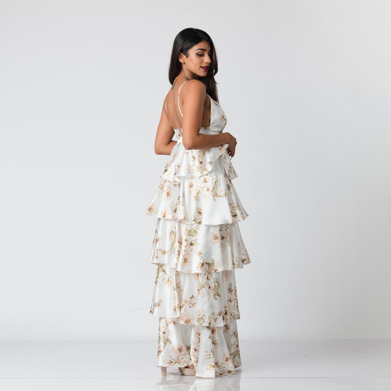 Details: Deep V Neck, Low Back, Straps, Lined, Side Zipper