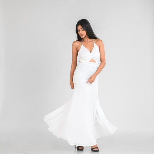 Boat Neck Tie Back Crop Top & Flared Skirt Set