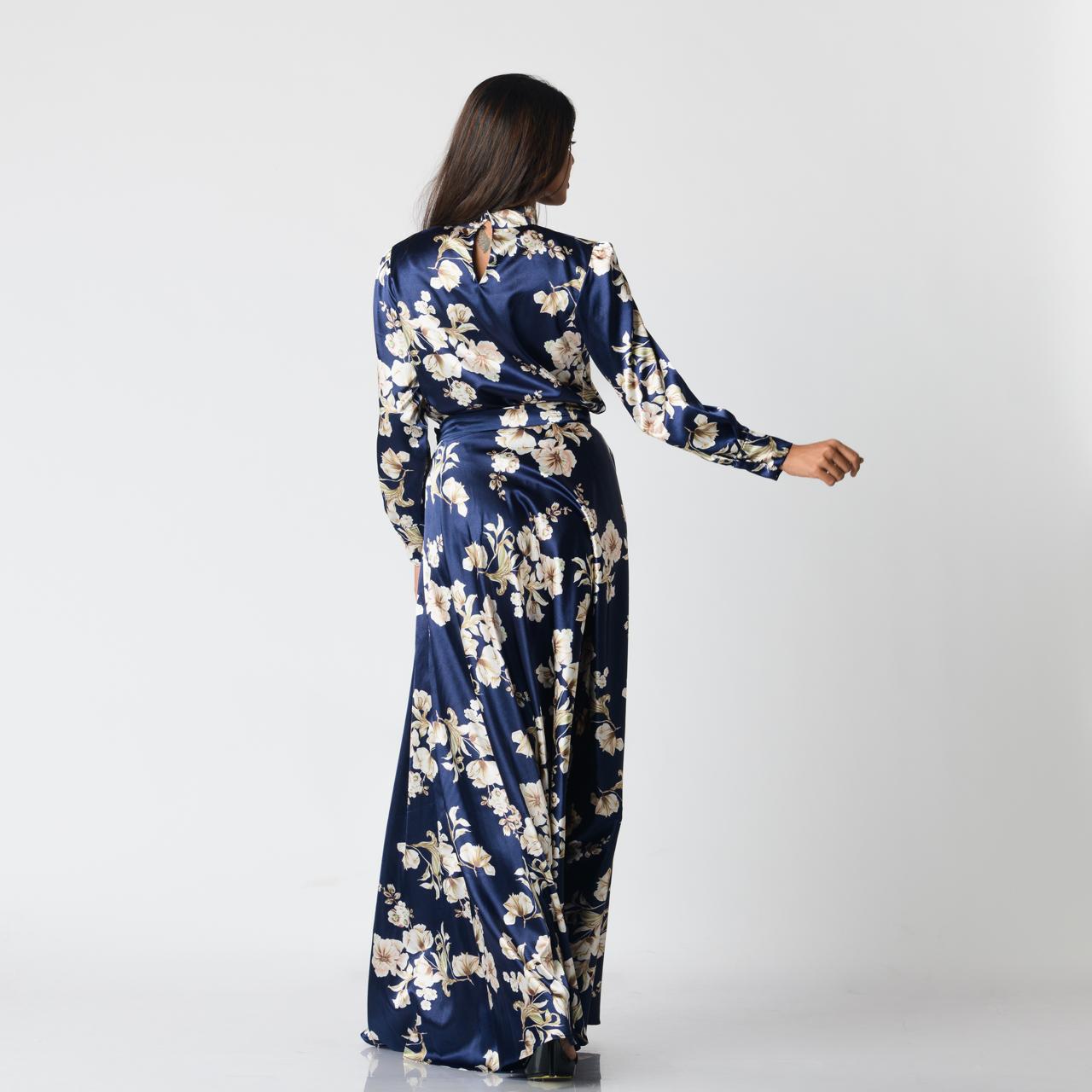 Details: High Neck, Long Sleeves, Cuffs, High Waisted, Flared Skirt, Back Closure